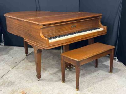 5′ 8″ in Satin Walnut. This piano is available as is, or with a Restoration Package. Contact me for more specific details of condition, and for purchasing information. |